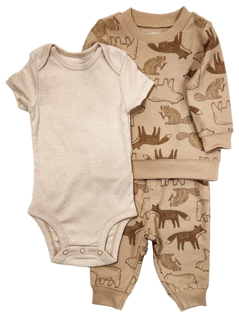 - Carters Infant Boys 3pc Brown Fox & Bear Bodysuit, Sweatshirt & Pants Set 0-3m