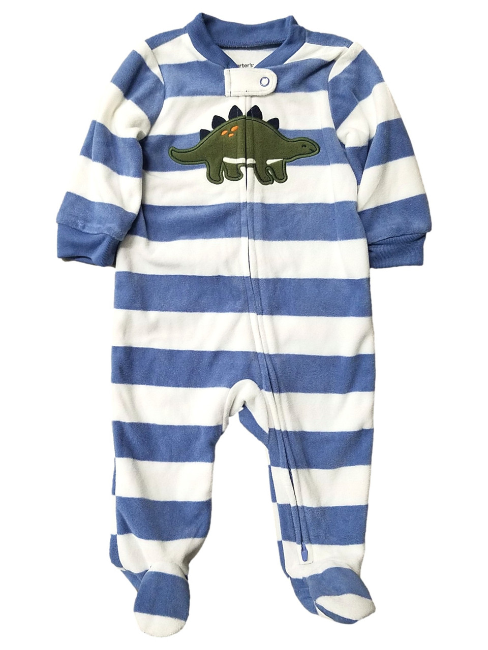 - Carters Infant Boys Fleece Blue Striped Dinosaur Sleeper Size 6 Months