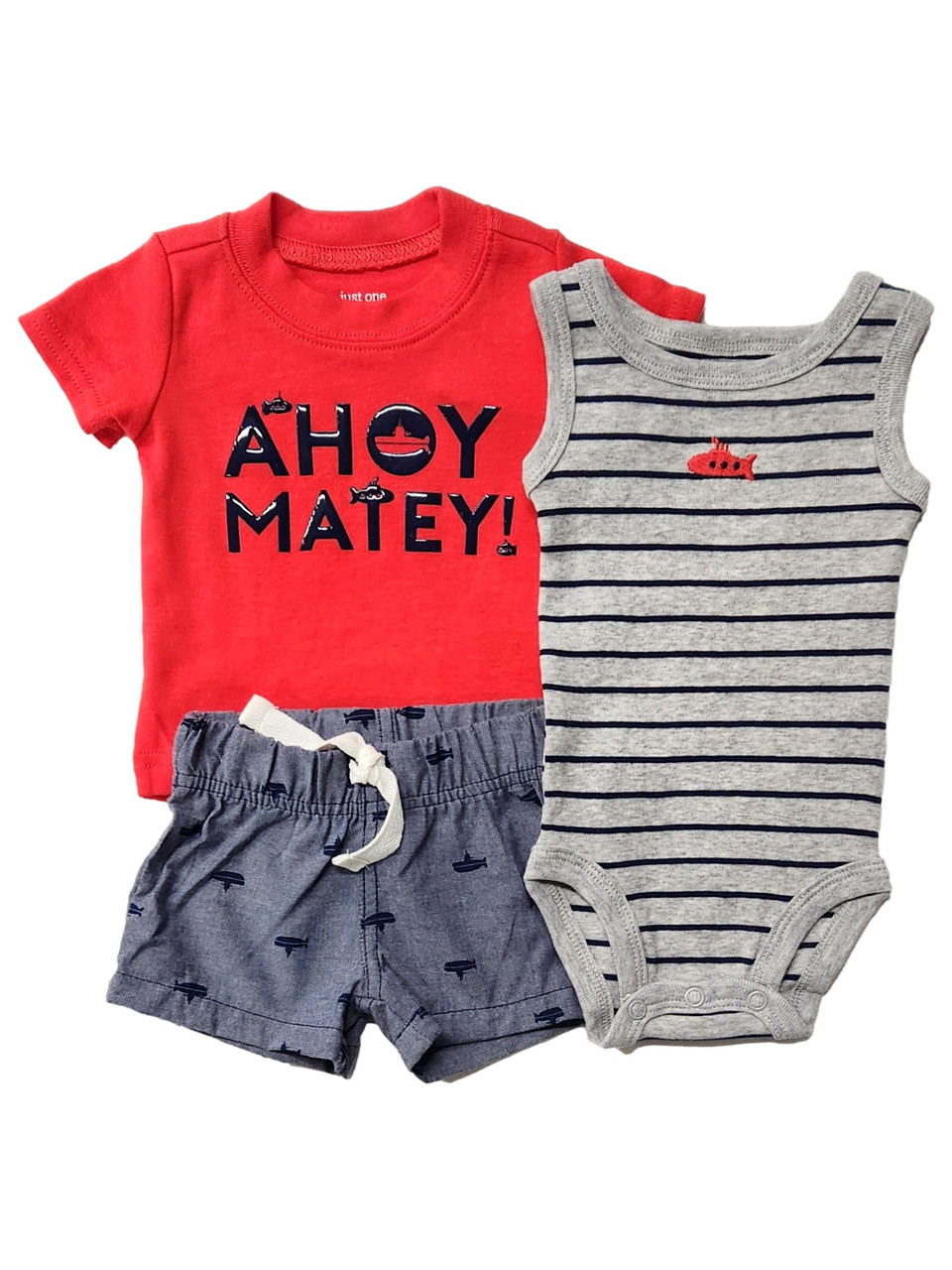 - Carters Infant Boys Red Ahoy Matey Baby Outfit Bodysuit, Shirt & Shorts Set