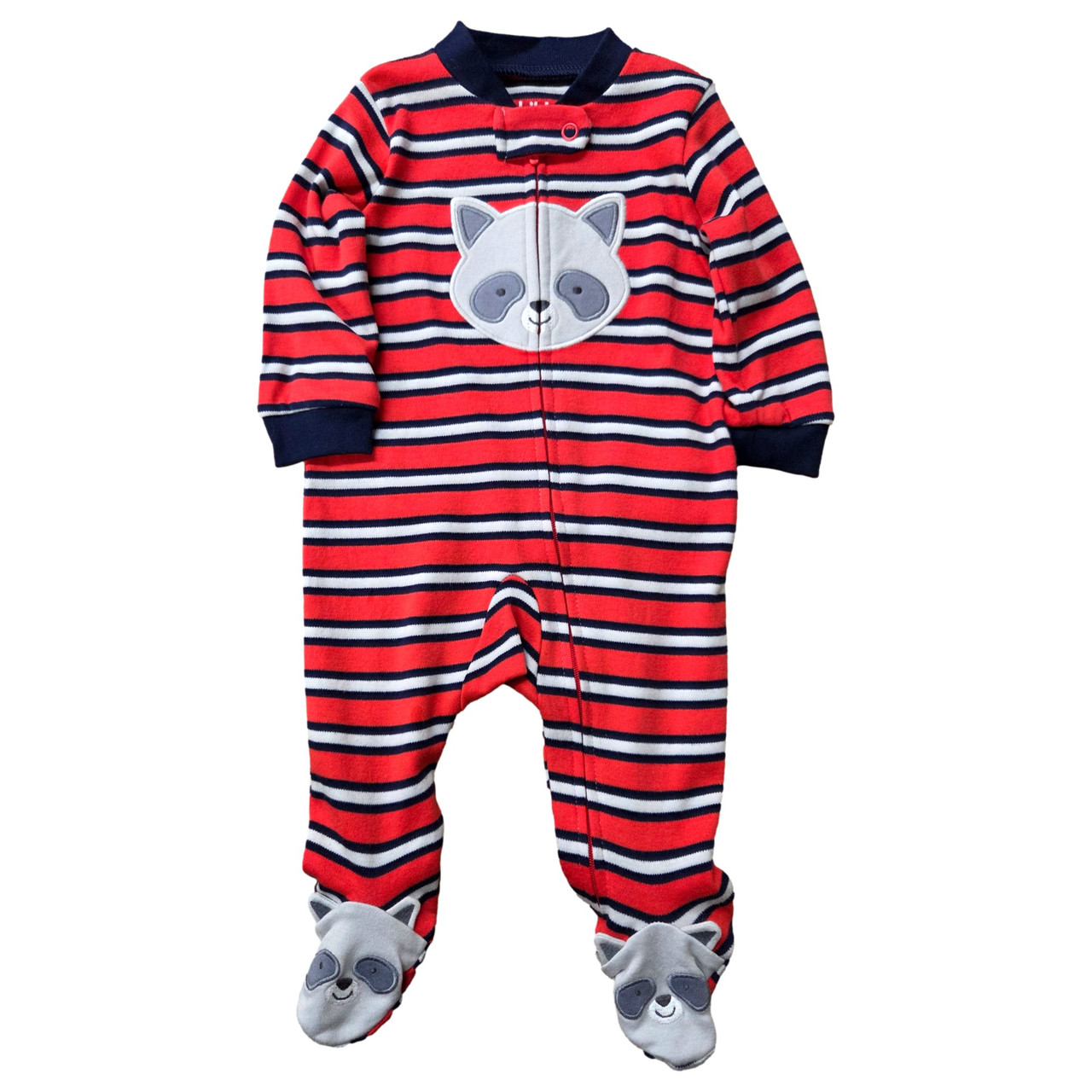 - Carters Infant Boys Red, White & Navy Racoon Footie Sleeper Pajamas