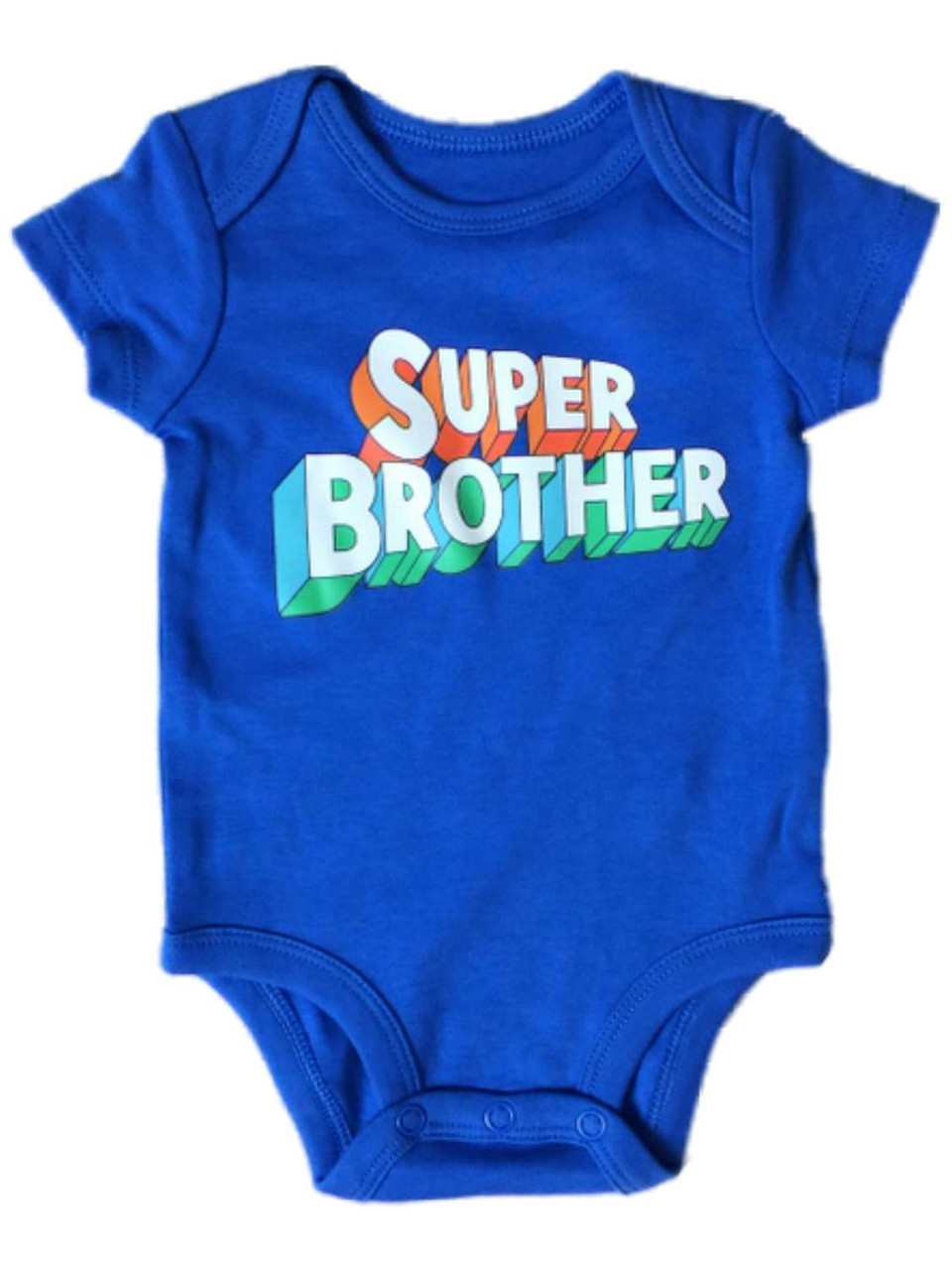 This adorable baby boys blue "Super Brother" bodysuit is sure to be a favorite!
