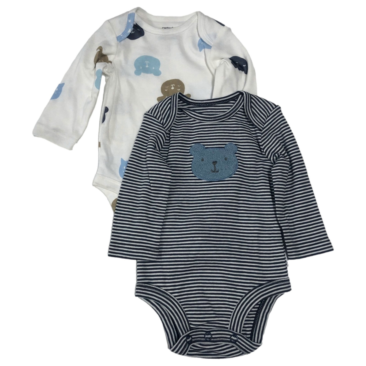 - Carters Infant Boys White Animal Print Long Sleeve Bear Bodysuit 2PC Set