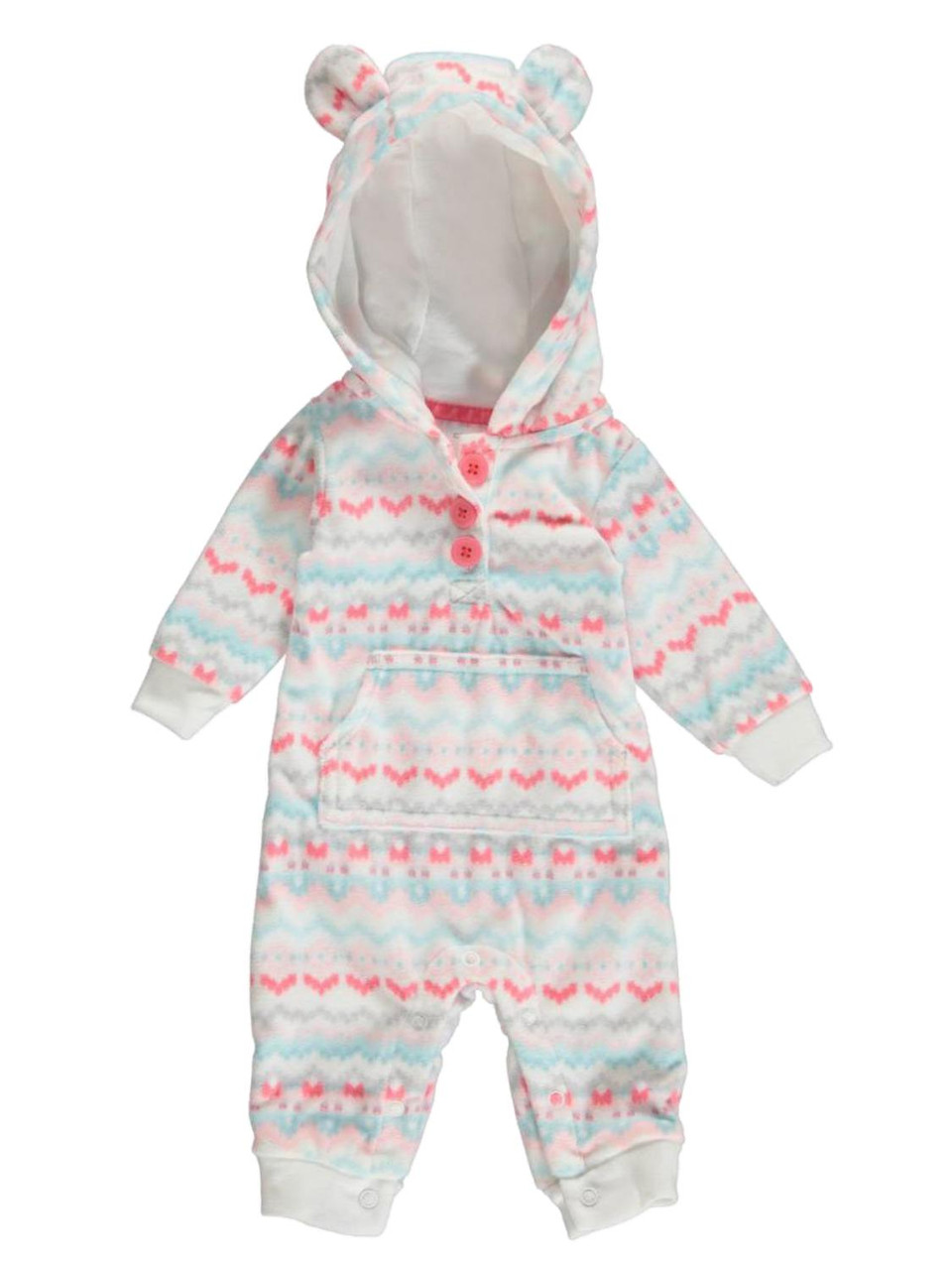 - Carters Infant Girl White Aztec Print Hooded Fleece Jumpsuit Coverall Outfit