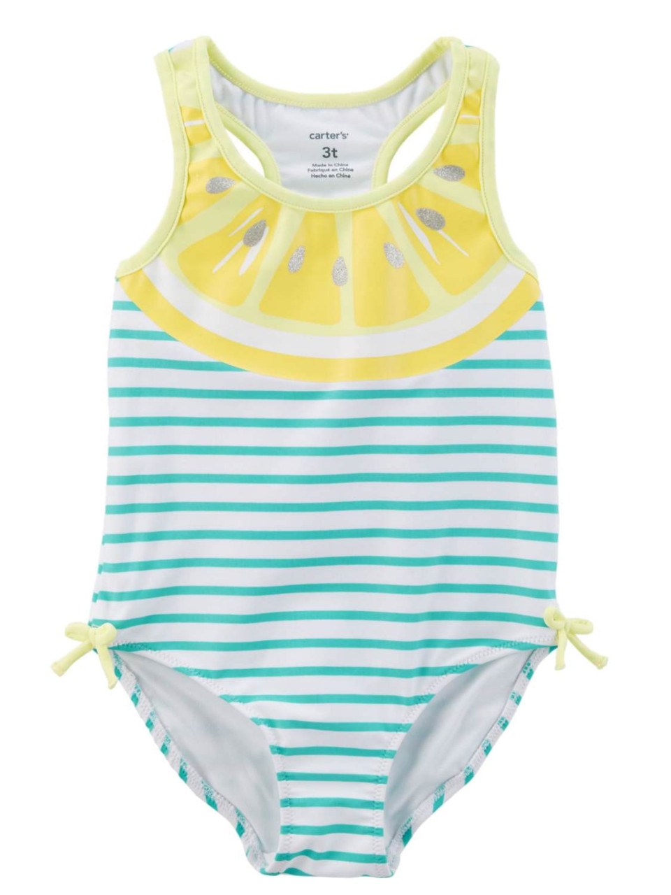 This pretty lemon themed 1 piece baby swimming suit is sure to be a favorite!