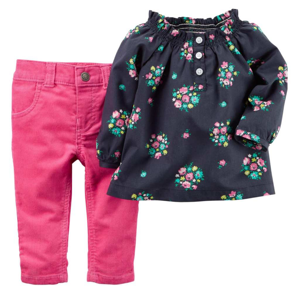 - Carters Infant Girls 2 Piece Blue Floral Shirt & Pink Corduroy Pants Outfit