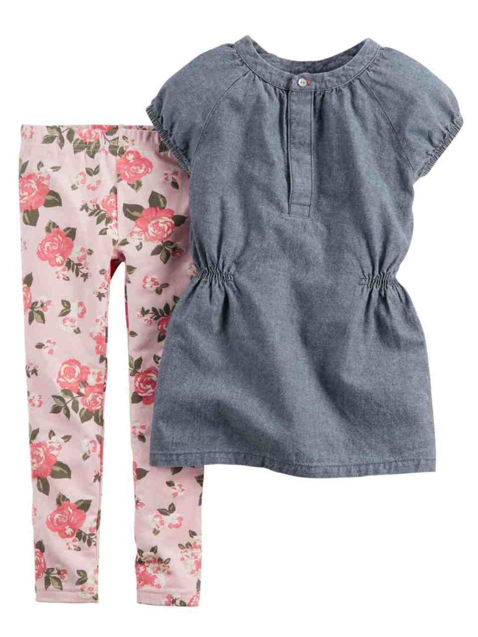 - Carters Infant Girls 2 Piece Set Denim Chambray Shirt & Floral Leggings Outfit