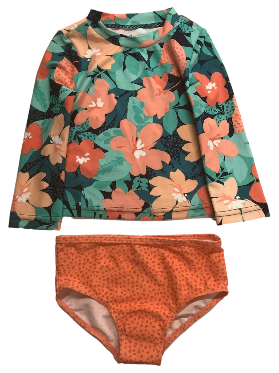 - Carters Infant Girls 2PC Orange & Green Floral Print Rash Guard Swim Suit 18m