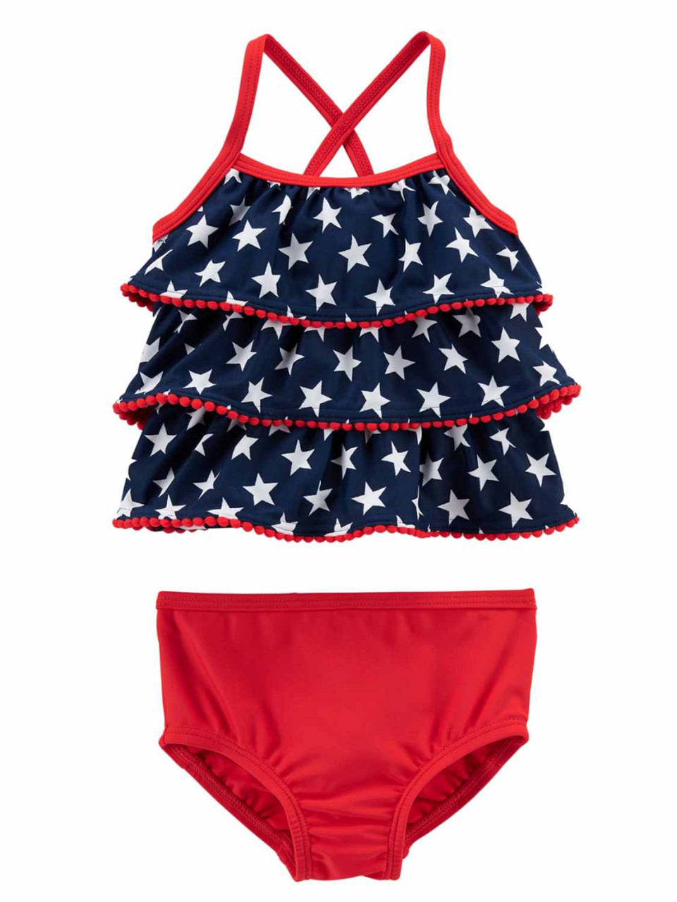 - Carters Infant Girls Blue 4th July Patriotic 2 Pc Ruffle Tankini Swimming Suit