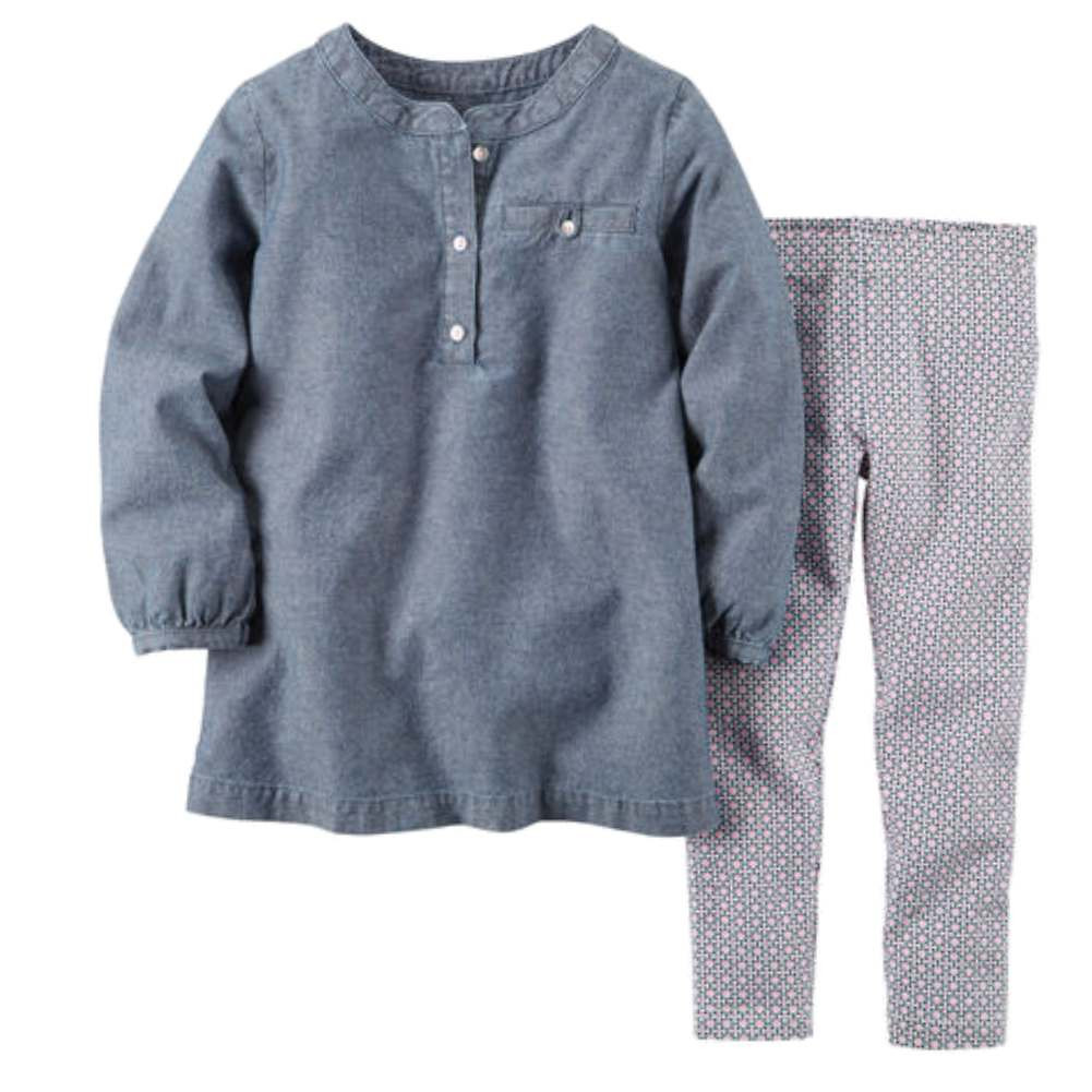 - Carters Infant Girls Blue Denim Chambray Shirt & Floral Leggings 2 Piece Set