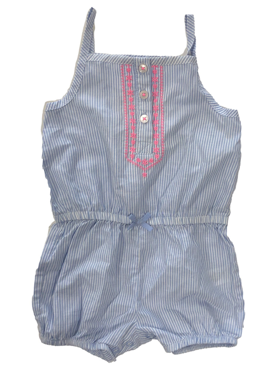 - Carters Infant Girls Blue Pinstripe Sleeveless Romper Pink Floral Baby Outfit
