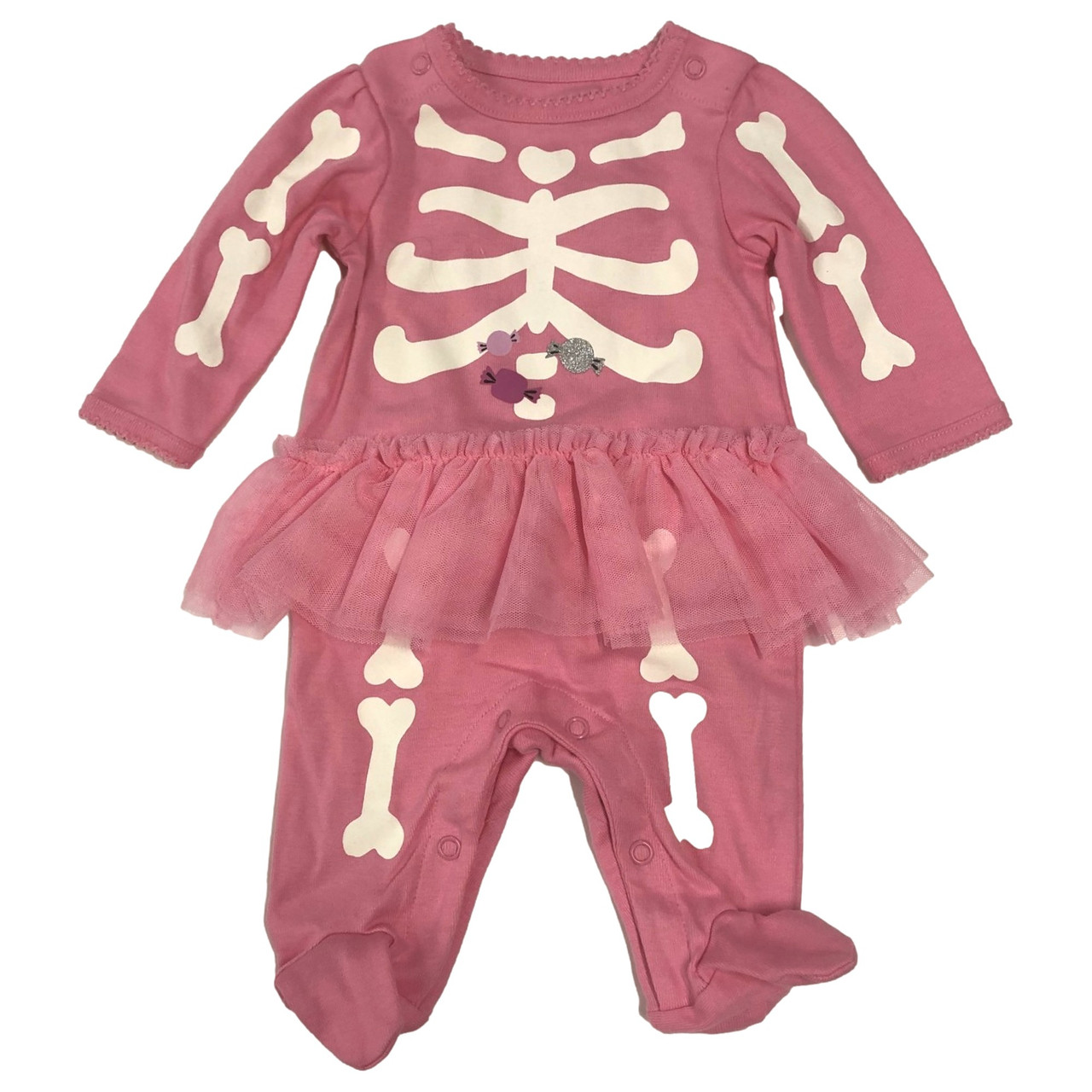 - Carters Infant Girls Halloween Pink Skeleton Tutu Footed Sleeper Pajamas