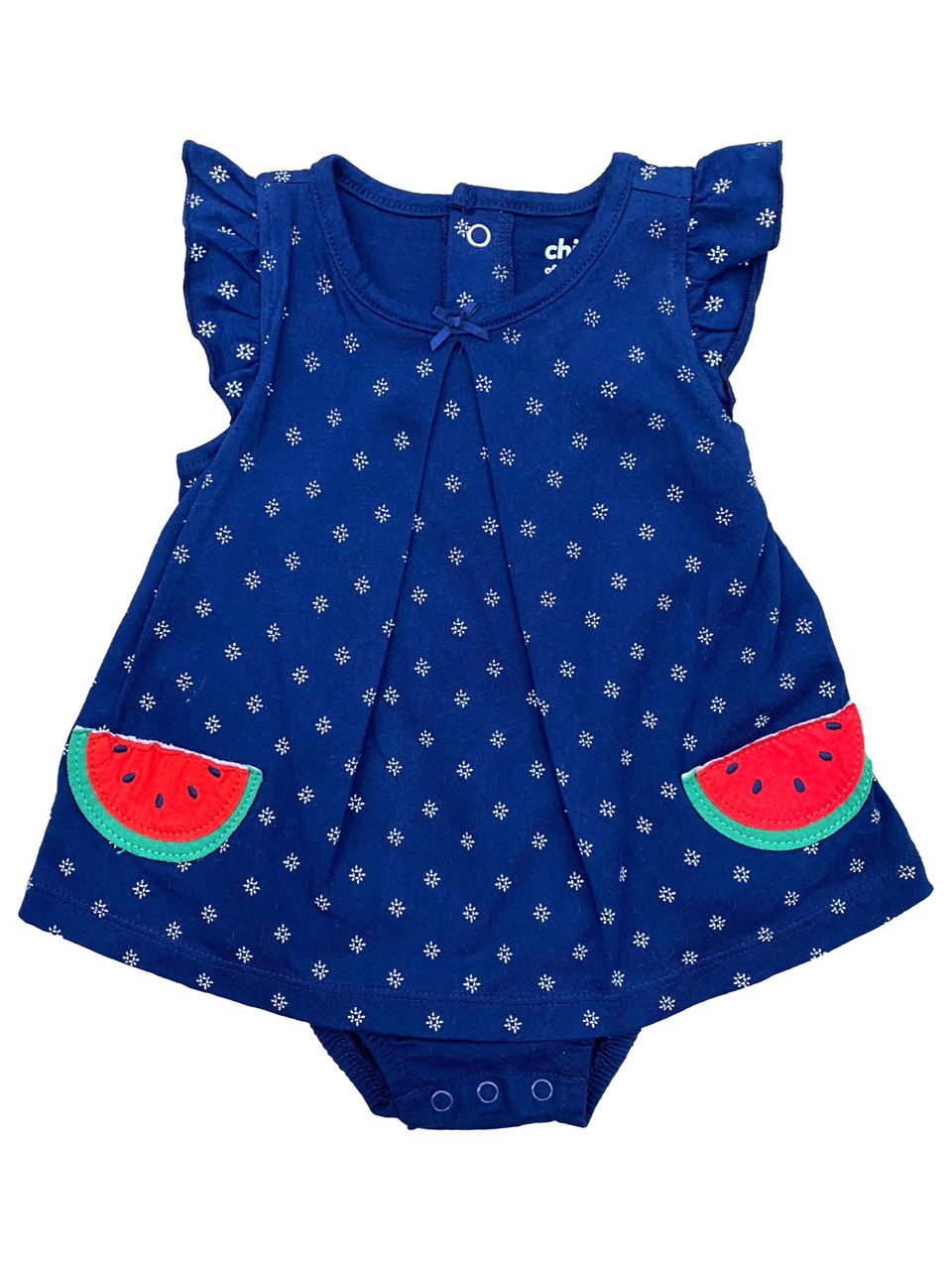 - Carters Infant Girls Navy Blue Watermelon Baby Romper Sun Dress Bodysuit