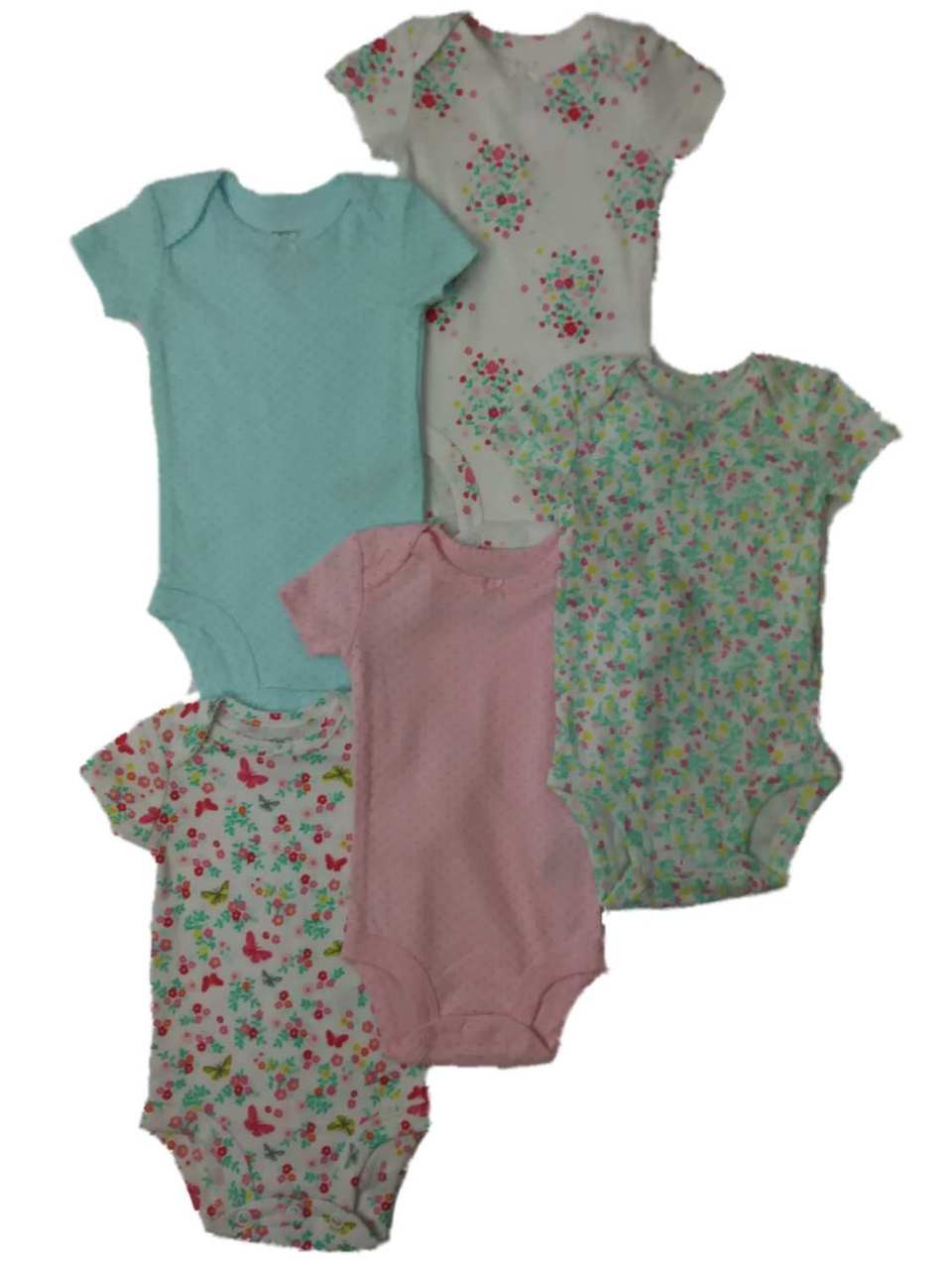 This set of 5 adorable flower and polka dot themed singles are sure to be your favorite staples of her wardrobe!