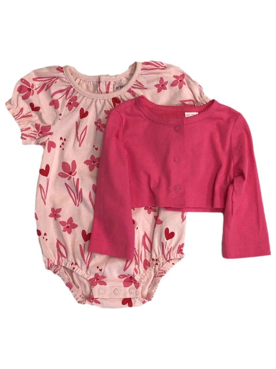 - Carters Infant Girls Pink Floral Heart Baby Outfit Romper & Jacket Set