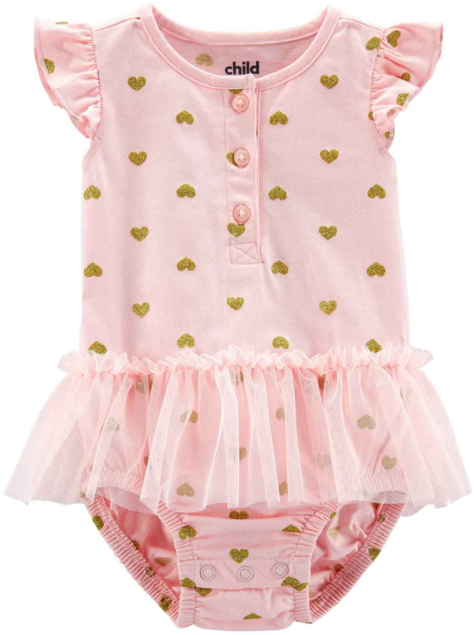 - Carters Infant Girls Pink Glitter Heart Tutu Romper Bodysuit Creeper