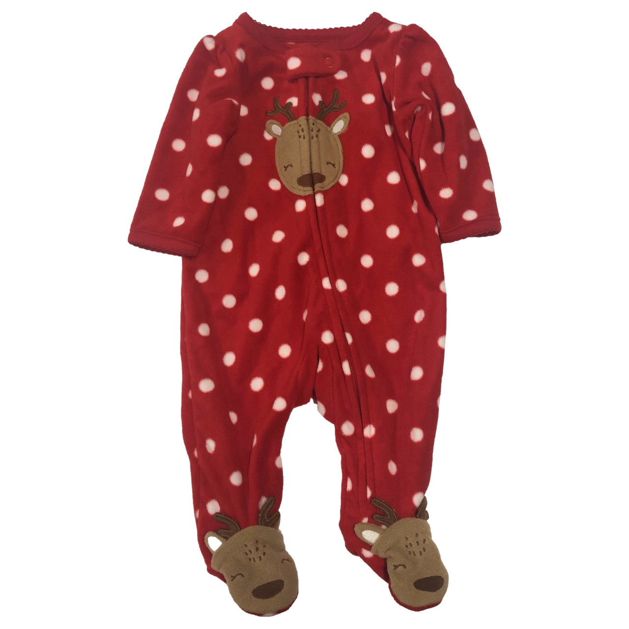 - Carters Infant Girls Red Polka Dot Fleece Reindeer Christmas Sleeper Pajama