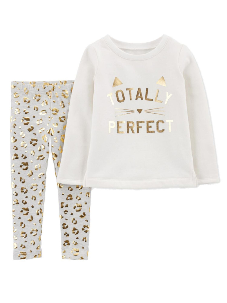 - Carters Infant Girls Totally Perfect Cat Sweatshirt & Gold Cheetah Leggings 12m