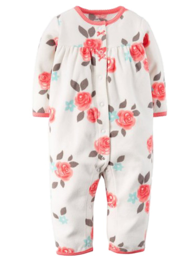 - Carters Infant Girls White Rose Print Fleece Jumpsuit Coverall Outfit