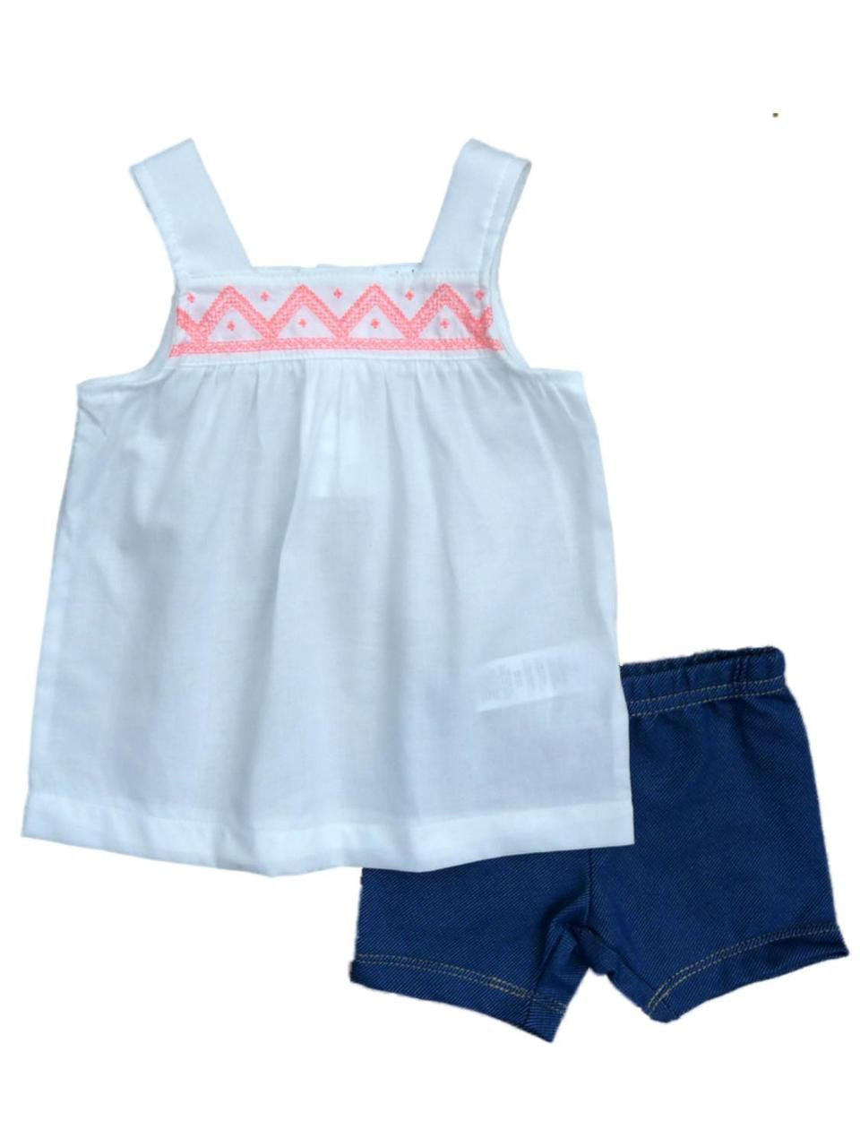 - Carters Infant Toddler Girls White Sleeveless Shirt Blue Shorts 2 Piece Set