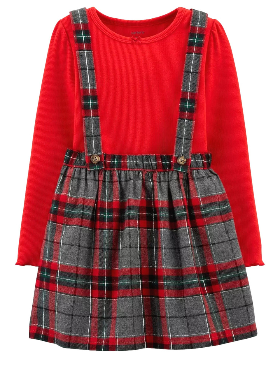 - Carters Toddler Girls 2 PC Outfit Red Shirt & Gray Plaid Jumper Dress Set