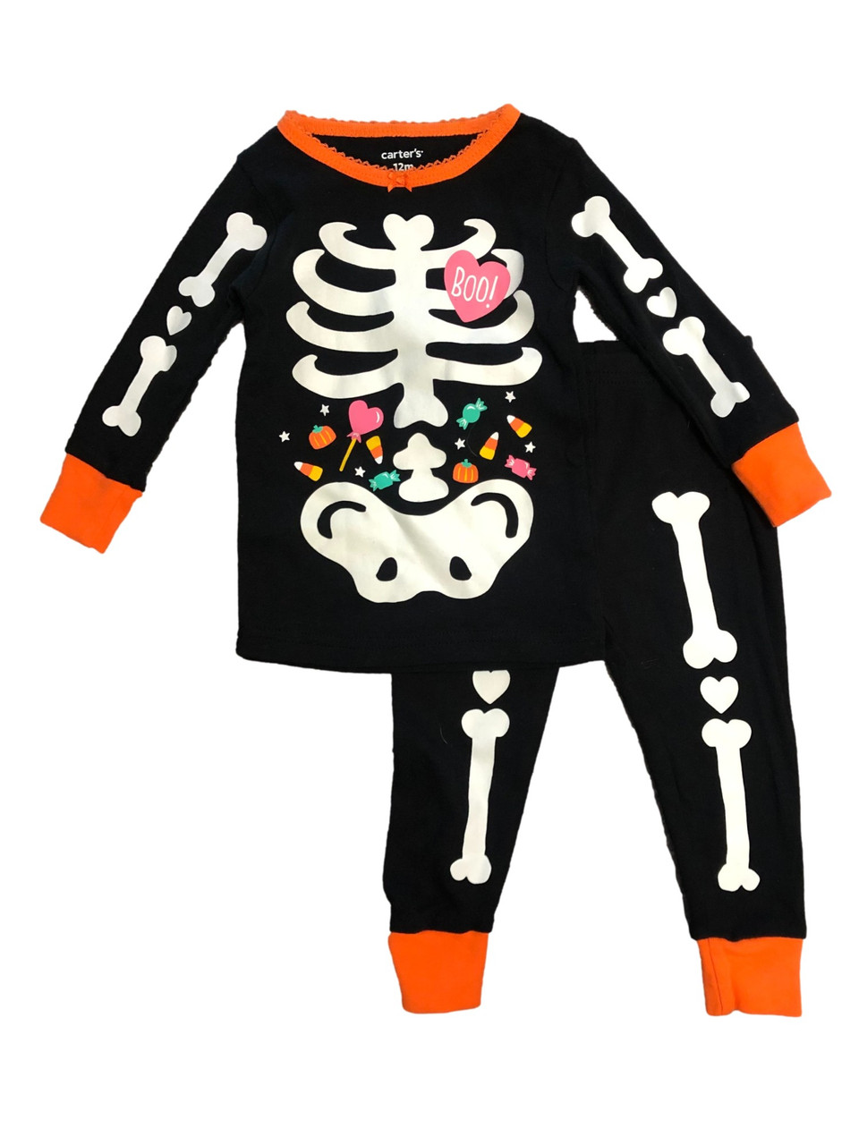 - Carters Toddler Girls Black Skeleton With Candy Cotton Halloween Pajamas 12m