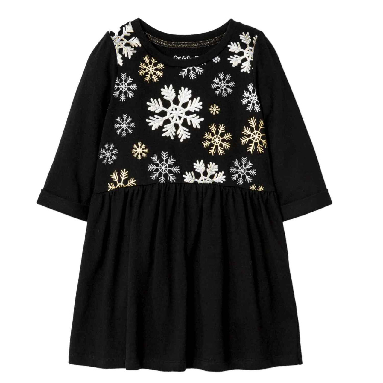 - Cat & Jack Infant Toddler Girls Black Glitter Snowflake Long Sleeve Dress