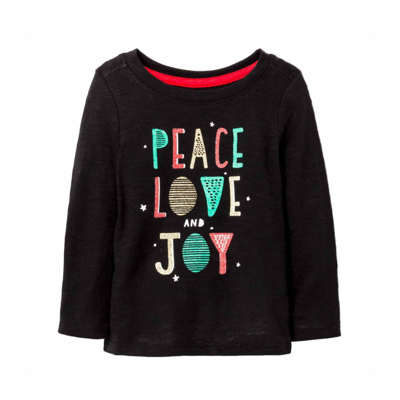 - Cat & Jack Toddler Girls Peace Love Joy Long Sleeve T-Shirt Holiday Tee Shirt