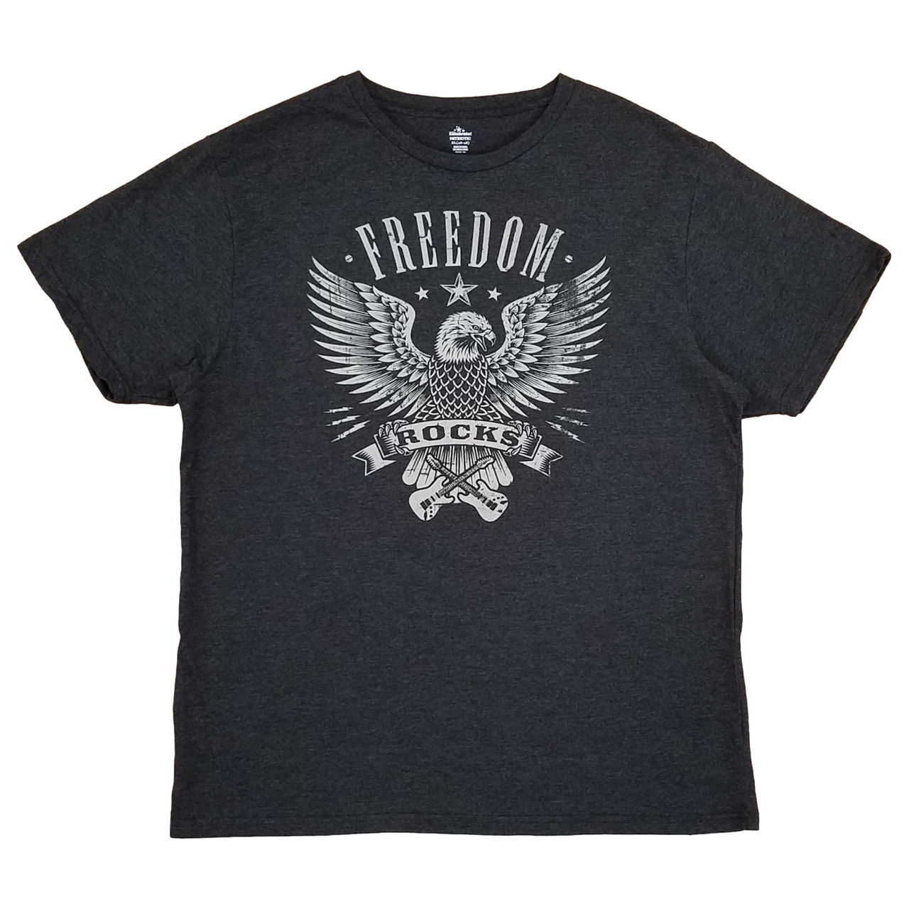 - Mens Black Heather Freedom Rocks Eagle Guitar Patriotic T-Shirt