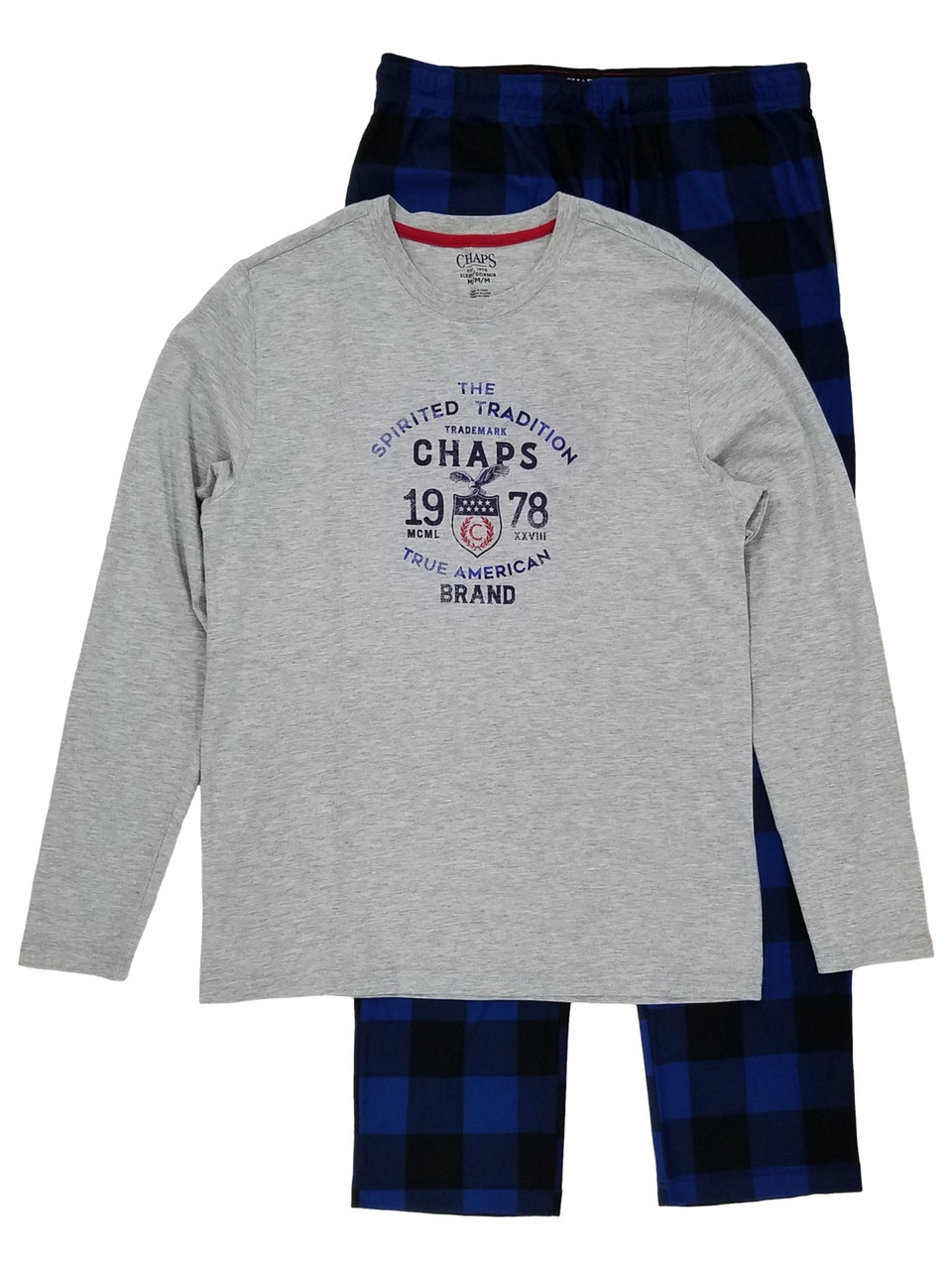 - Chaps Mens 2-Piece Gray & Blue Plaid Long Sleeve Sleepwear Pajama Set Medium