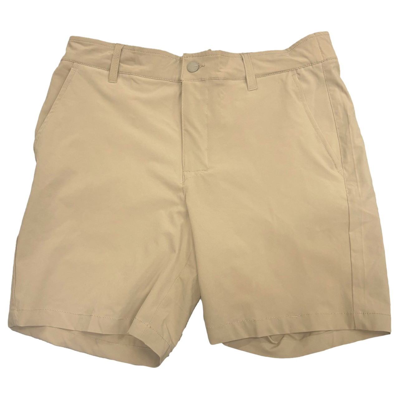 These well made cozy beige everyday performance flat front Chaps tech shorts are perfect for sunny days! They have a button/zip front, belt buckles, & a little elastic in the waist.
