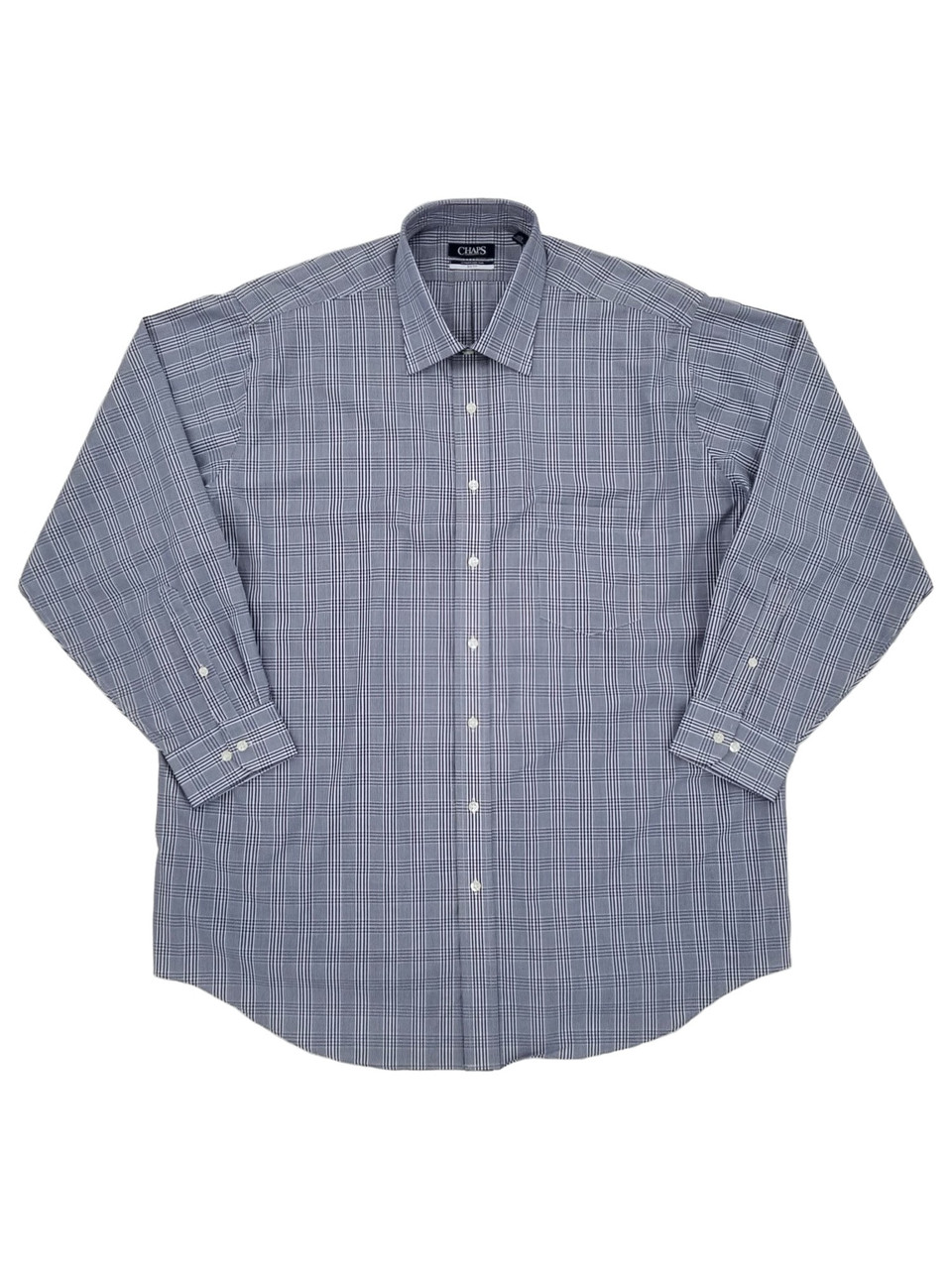 - Chaps Mens Navy Plaid Big Fit Non Iron Flex Collar Dress Shirt