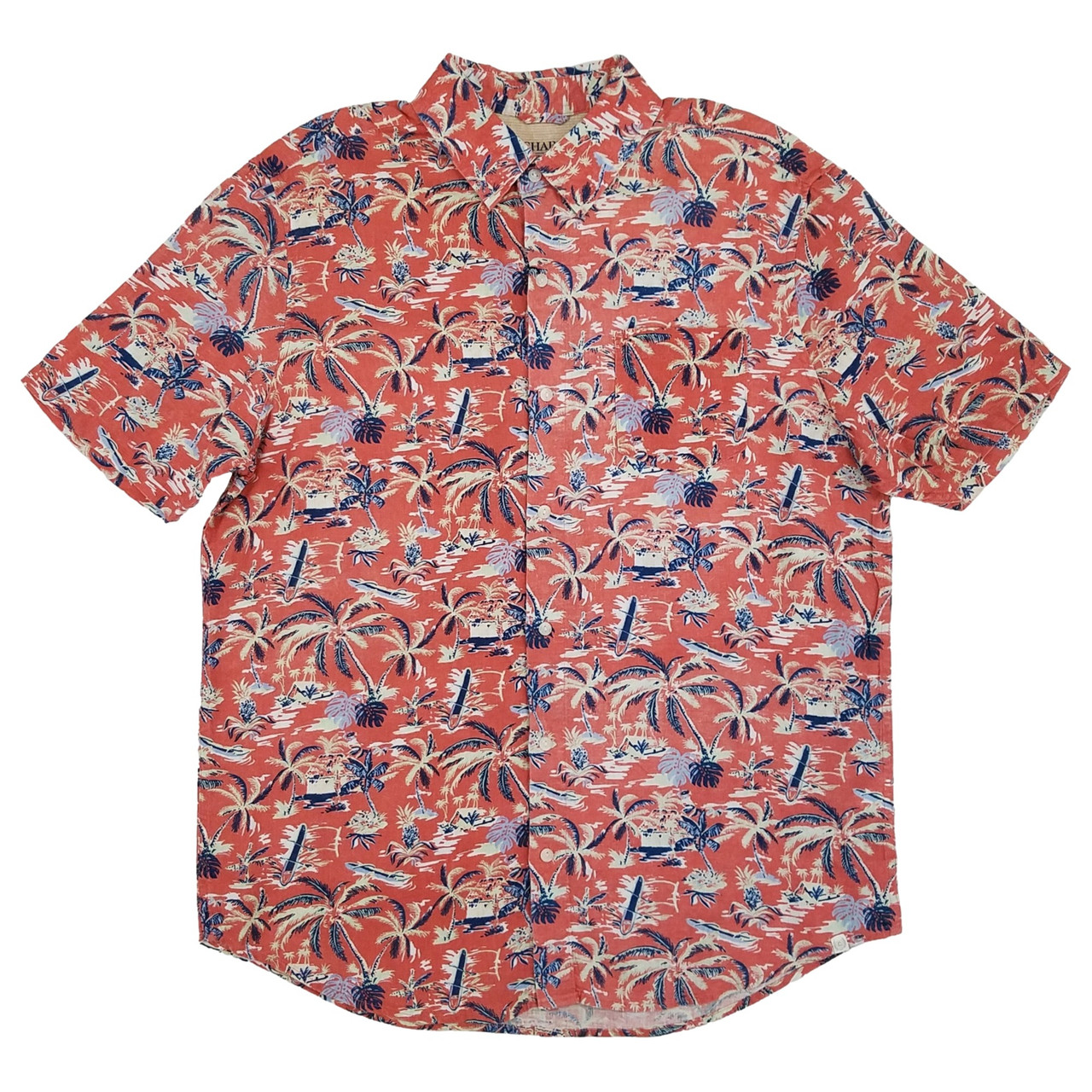 - Chaps Mens Red Hawaiian Print Short Sleeve Button Down Untucked Linen Shirt L