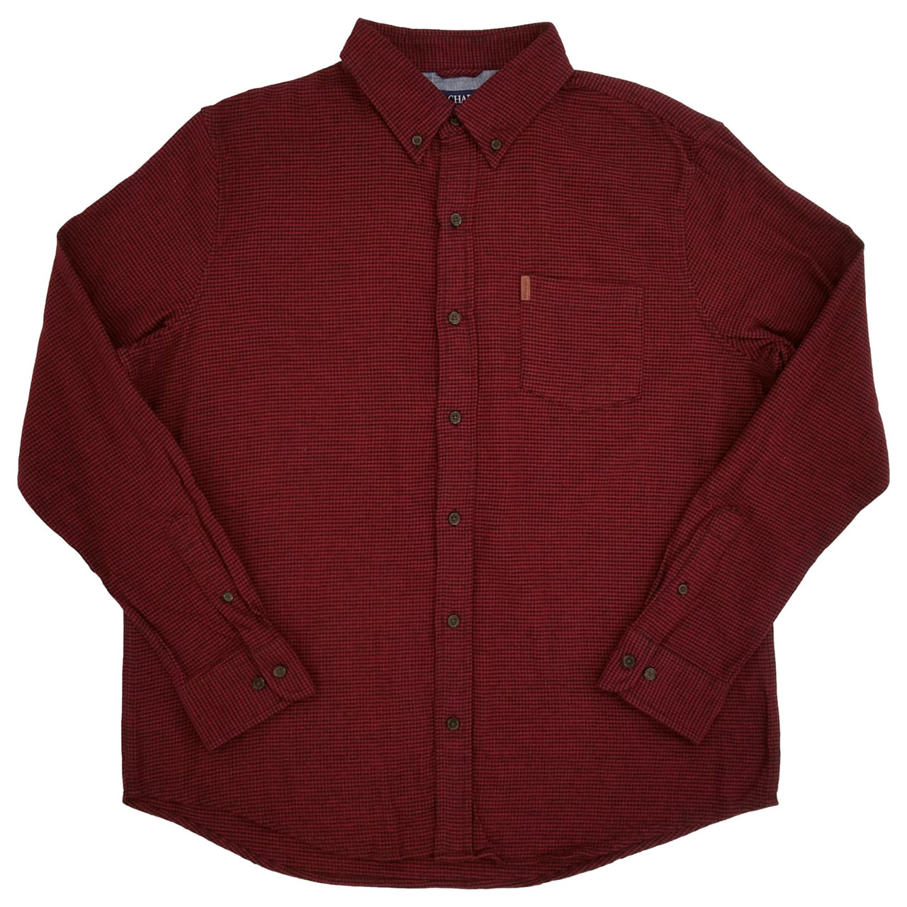 - Chaps Mens Red Houndstooth Long Sleeve Stretch Untucked Flannel Shirt