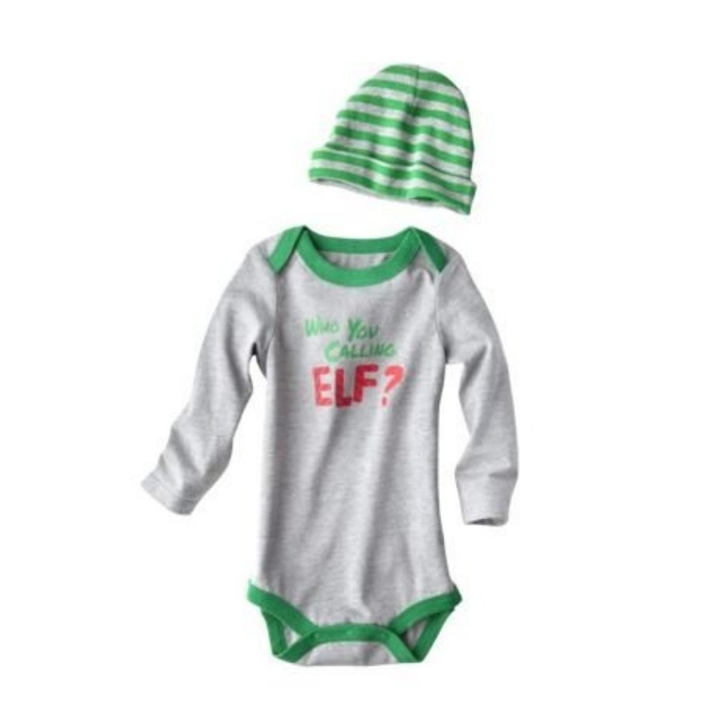 - Cherokee Infant Boys Who You Calling Elf Onesie Christmas Bodysuit & Hat Set 3m