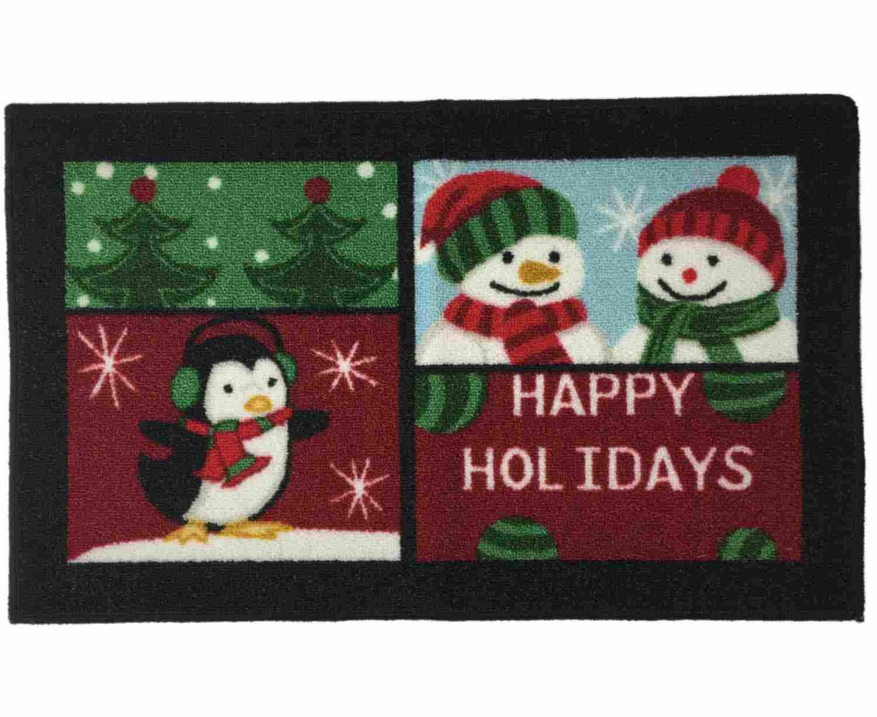 This pretty patchwork Christmas accent rug features "Happy Holiday" sentiments on a black background. It is skid resistant and will make a great accent rug!