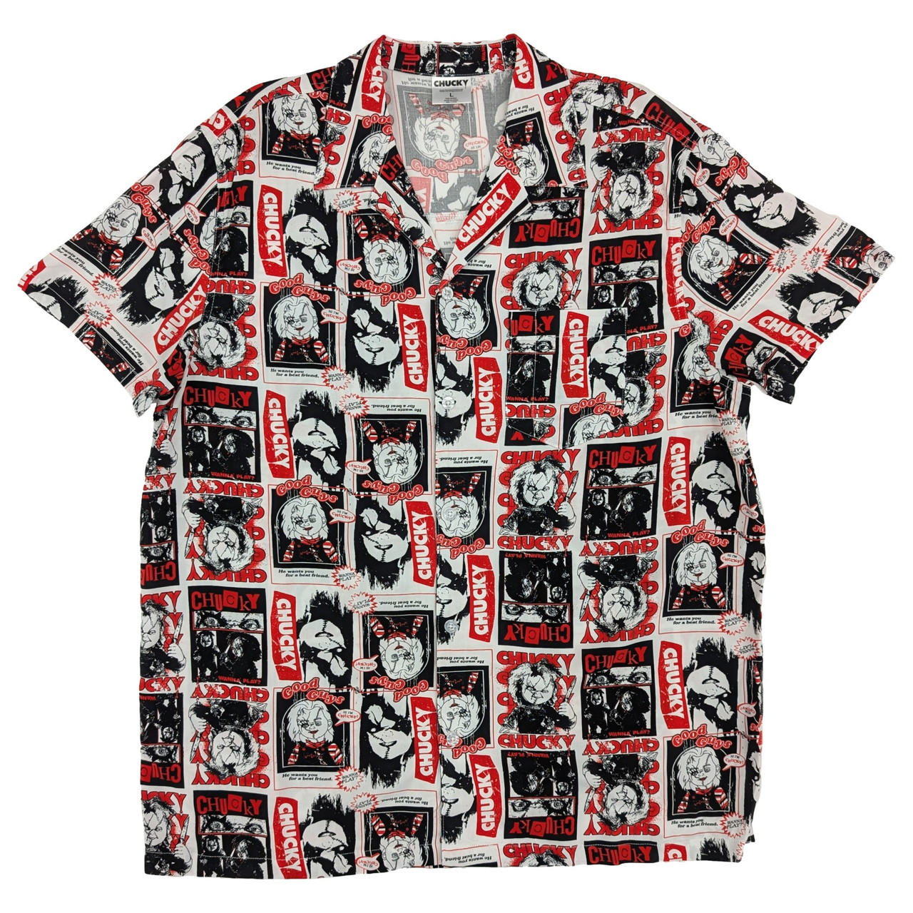 Style meets comfort in this soft rayon shirt, featuring an all-over Chucky print.
