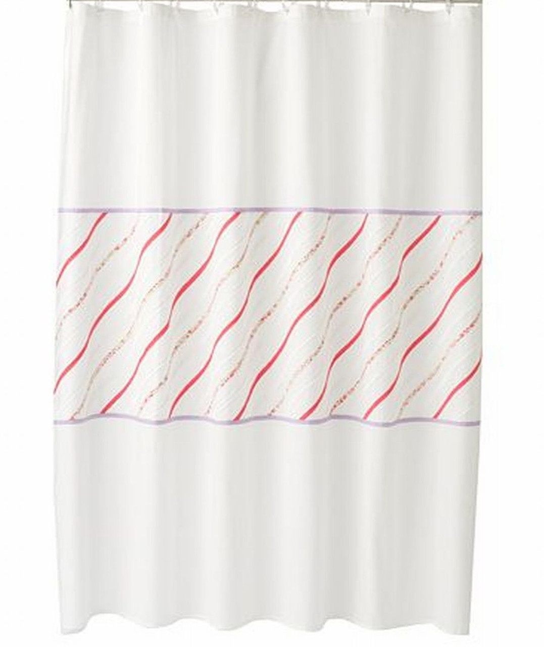 This Croft & Barrow Cora Ruffle fabric shower curtain has a great look. It white in color with pink and white ruffle accents. This pretty shower curtain will add style to any bath