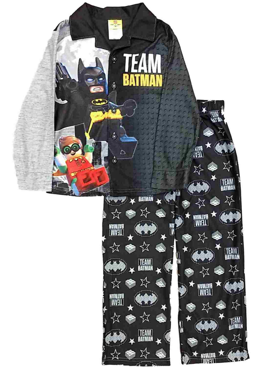 - DC Comics Boys Black Flannel Lego Team Batman & Robin Pajamas Sleep Set