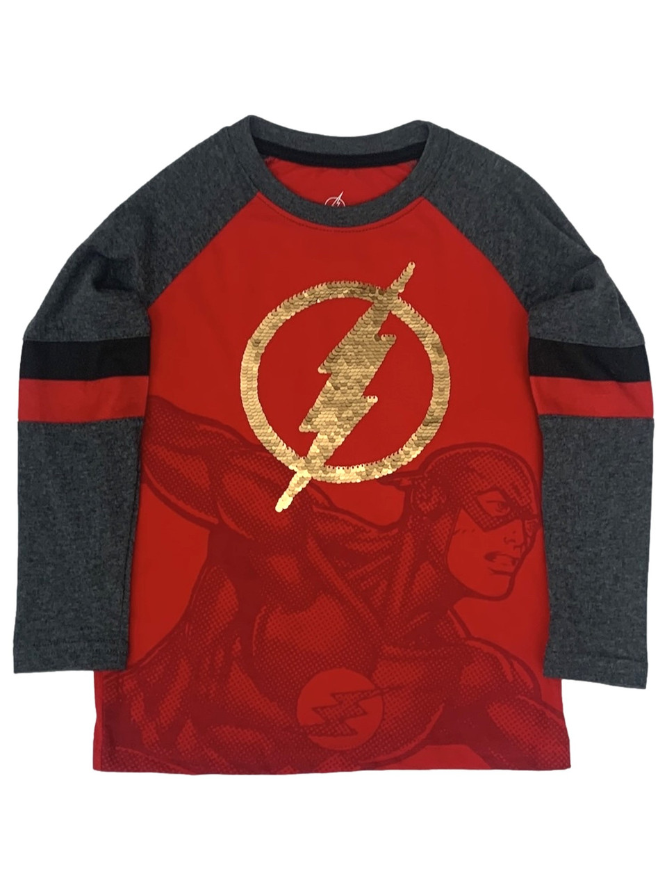 - DC Comics Boys Long Sleeve Red Flip Sequin Flash T-Shirt Tee Shirt XS (4-5)