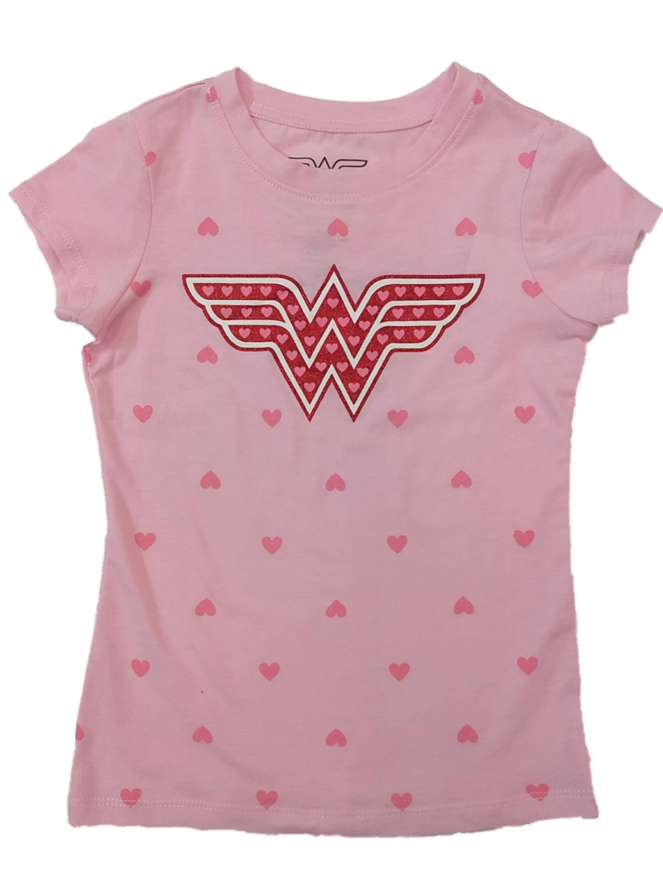 This cute pink girl's Wonder Woman Valentine's day shirt is sure to be a favorite!