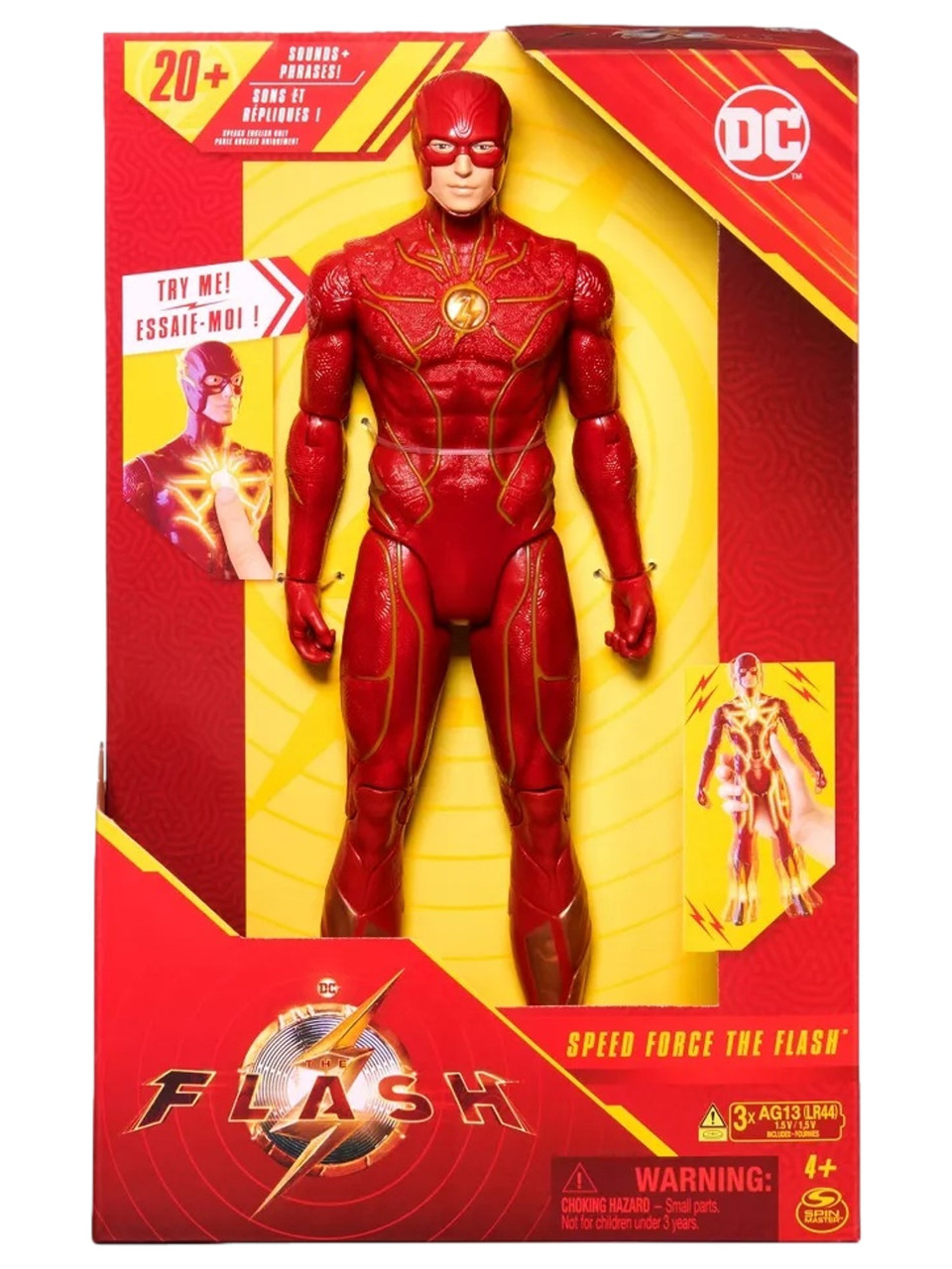 - Press Flash’s chest logo or shake to activate unique light patterns across his suit and 20+ sounds!