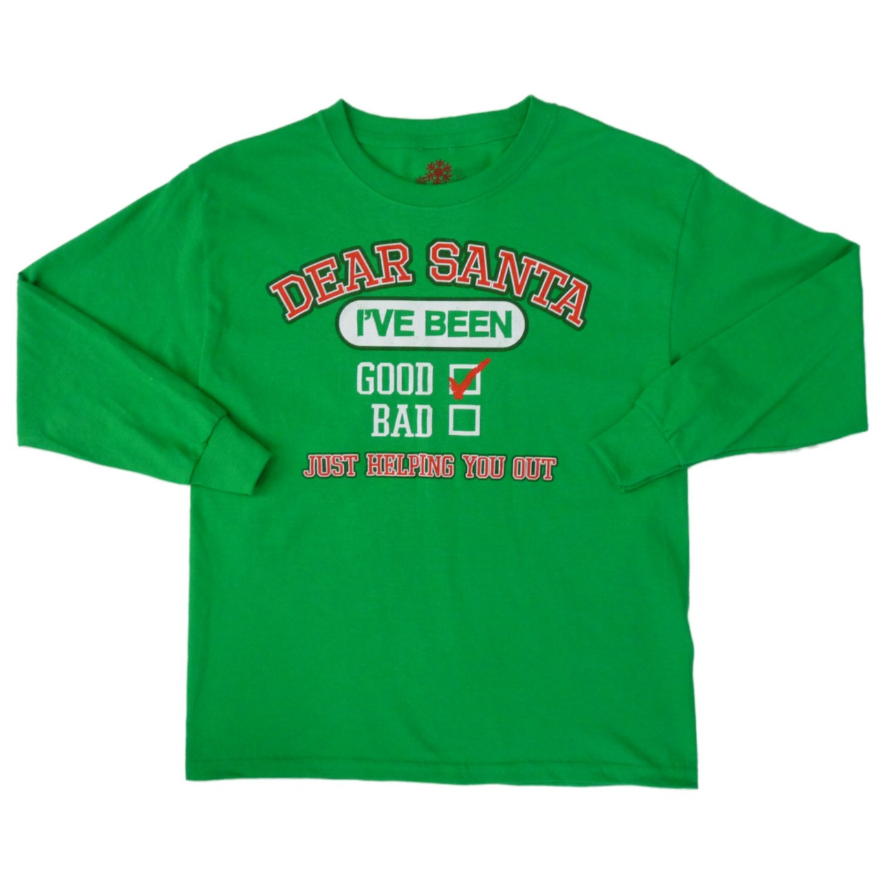 - Dec 25th Boy Green Christmas T-Shirt Dear Santa Just Helping Long Sleeve