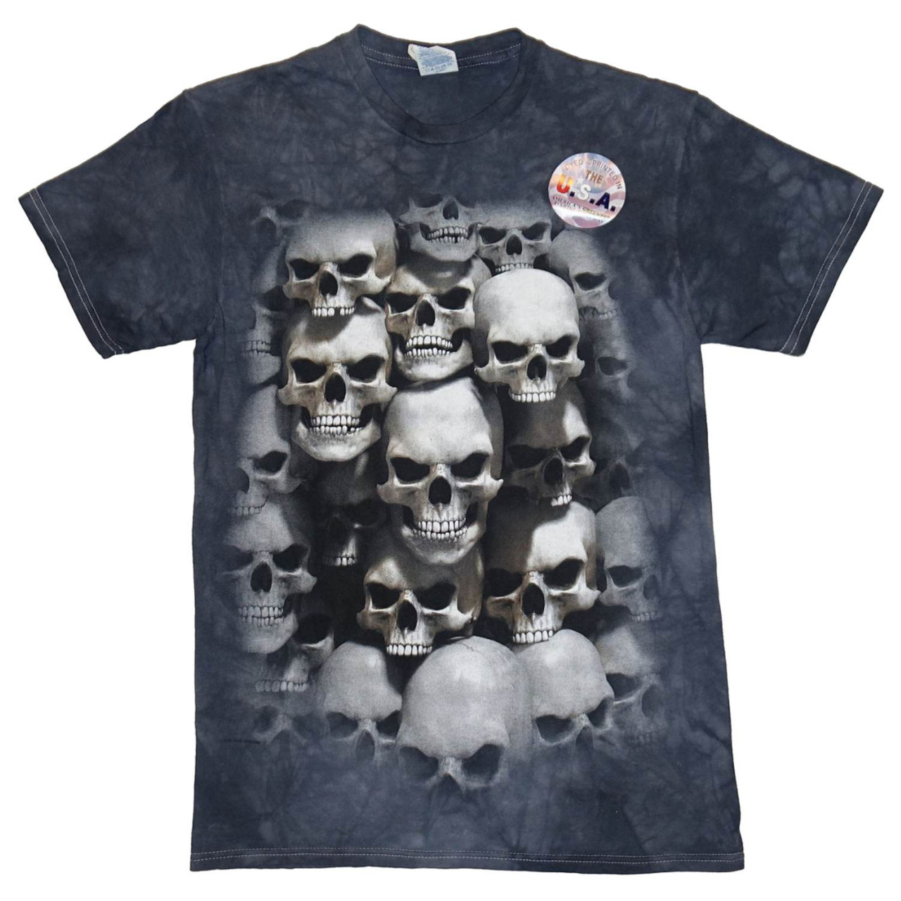 - Mens Blue & Gray Skull Pile Scene Halloween T-Shirt