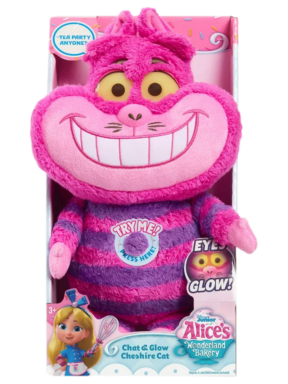 - Disney Junior Alice’s Wonderland Bakery Chat & Glow Cheshire Cat Plush Stuffed Animal
