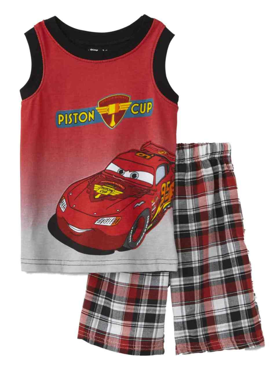 This baby boy's 2-piece outfit is sure to be a favorite. It features Lightning McQueen from Cars and includes a tank top and plaid shorts.