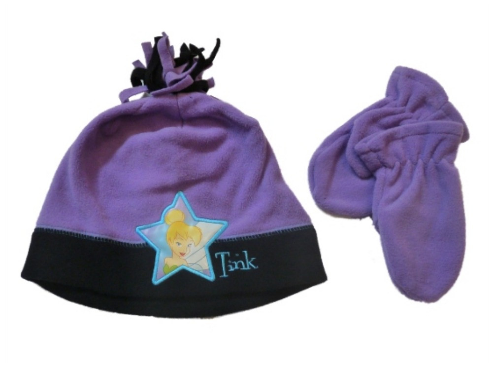 This soft purple fleece hat and mittens set features everybody's favorite Disney fairy, Tinkerbell!