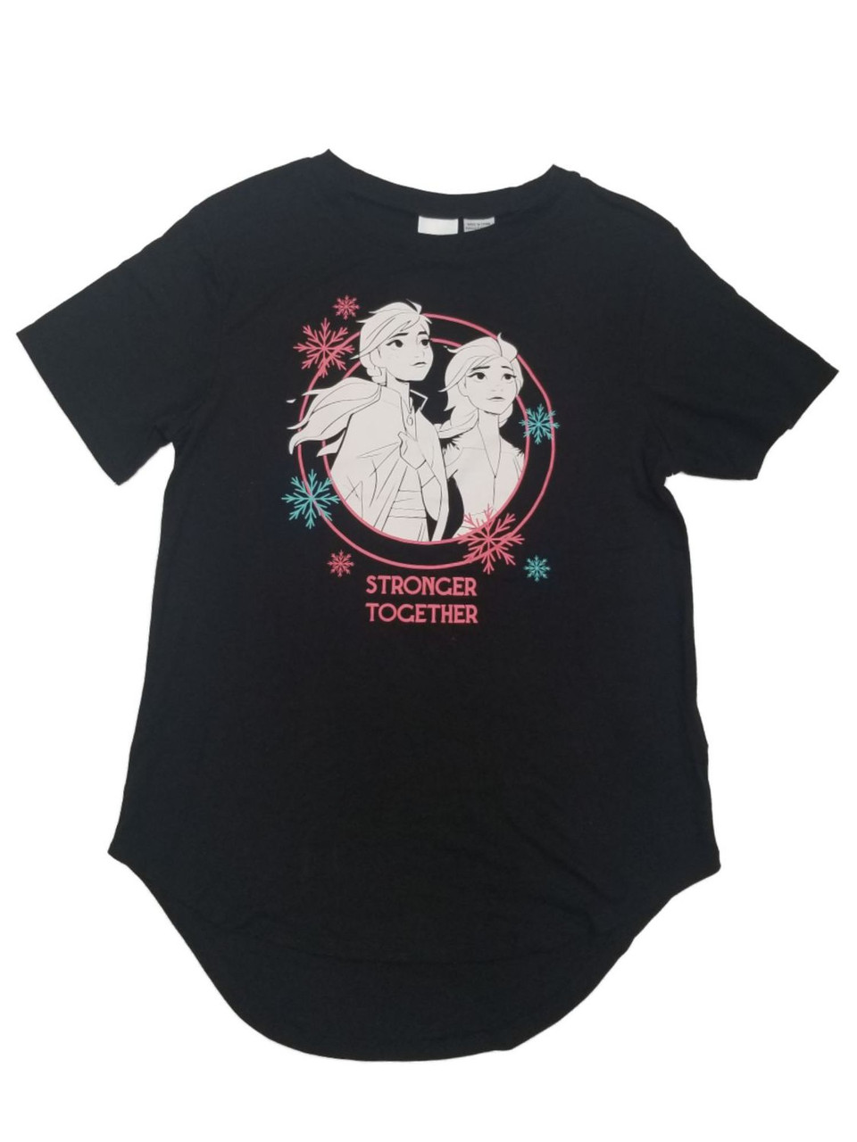 - Disney Frozen Junior Womens Black Stronger Together Elsa & Anna T-Shirt