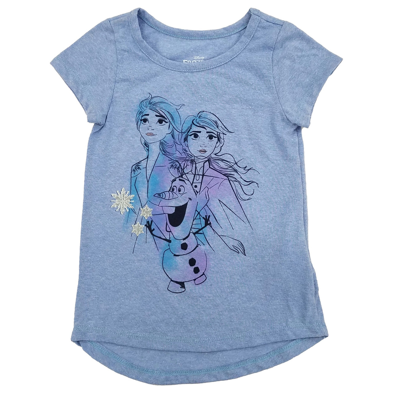 - Disney Frozen Toddler Girls Light Blue Elsa Anna & Olaf Short Sleeve T-Shirt