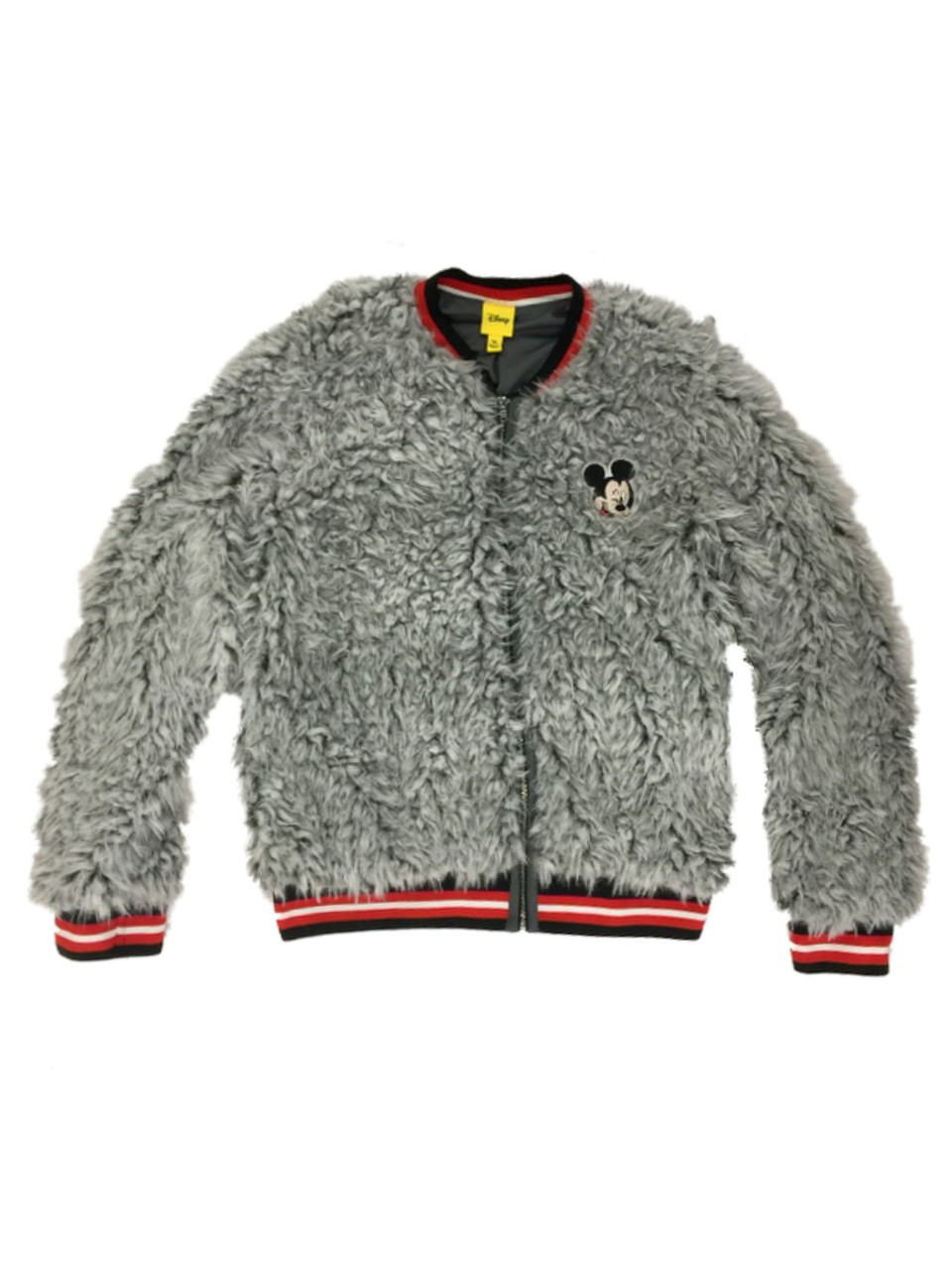 - Disney Girls Gray Faux Fur Mickey Mouse Zip Front Sweatshirt Jacket