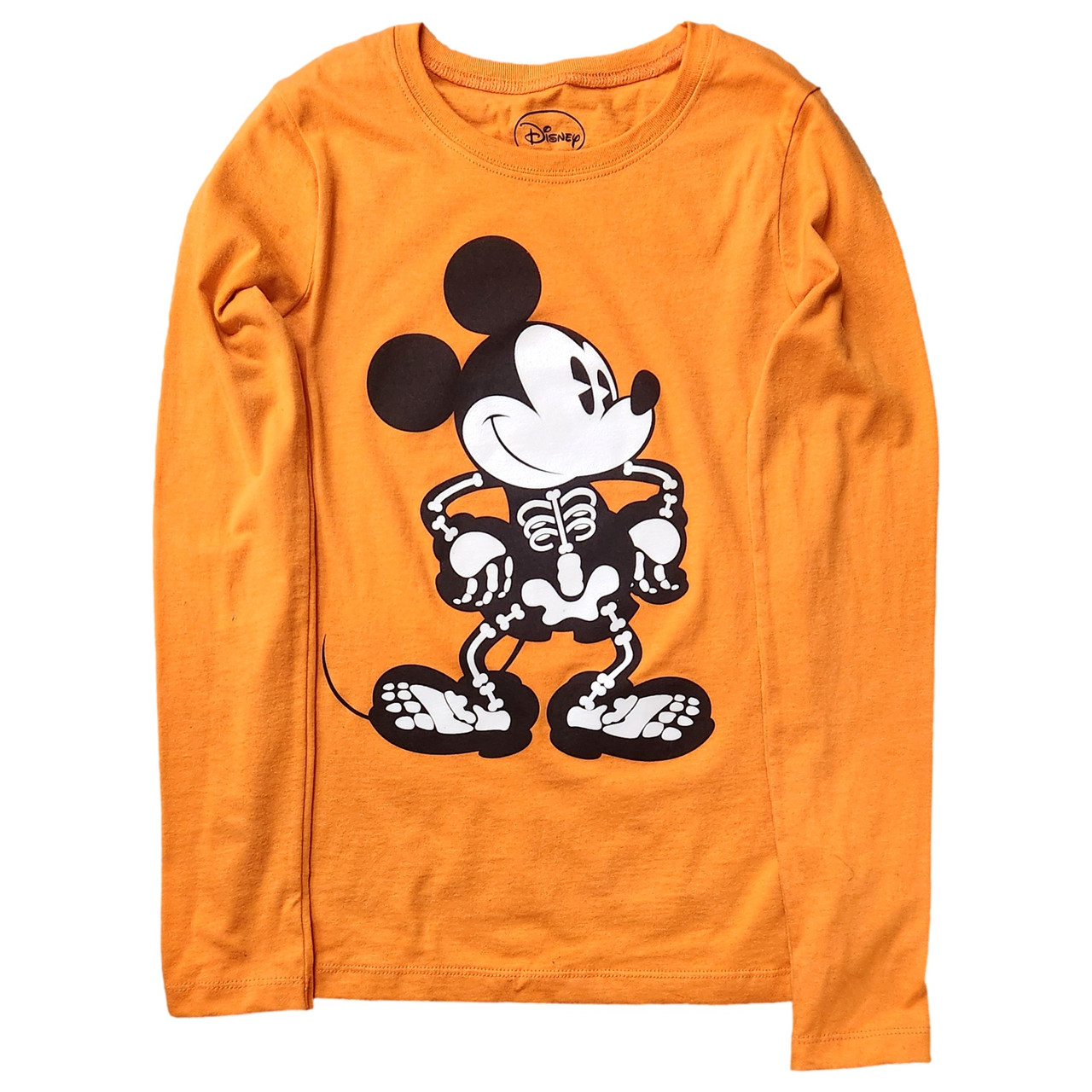 - Disney Girls Orange Mickey Mouse Skeleton Halloween Tee T-Shirt Large 10-12